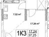 1 кімната , площа 37.25 / 17.24 / 7.3 , поверх 14