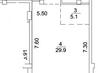 1 кімната , площа 51.5 / 29.9 / 5.1 , поверх 6