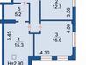2 комнаты , площадь 59.5 / 33 / 12 , этаж 4