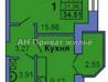 1 комната , площадь 35 / 15 / 9 , этаж 3