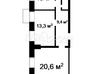 1 комната , площадь 55 / 18 / 14 , этаж 34