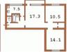 2 комнаты , площадь 54 / 9 , этаж 17