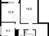 2 комнаты , площадь 56 / 8 , этаж 17